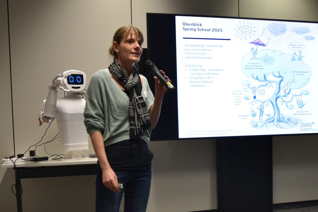 “Our ‘Spring School’ aims to offer students from various subject areas the opportunity to improve key skills that have become indispensable in these dynamic times, for instance AI skills, reflection skills, resilience and a sense of responsibility. Its format of an online module followed by a block seminar, coaching session and the final phase offers scope for students to explore the topics independently and participate in interdisciplinary exchange. The last Spring School focused on AI. Taking a flexible approach to formats is important for us to be able to react to new topics. This leads to sustainable skill development that is especially effective in context-specific situations.”