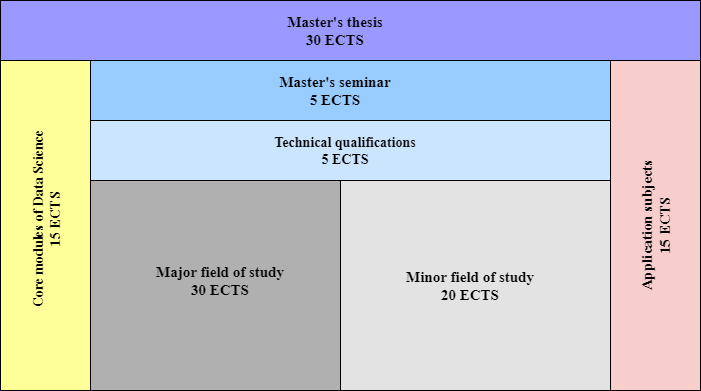 The degree programme is finalized by a Master’s seminar (5 ECTS) that should lead to writing a Master’s thesis (30 ECTS) in the field of Data Science.
