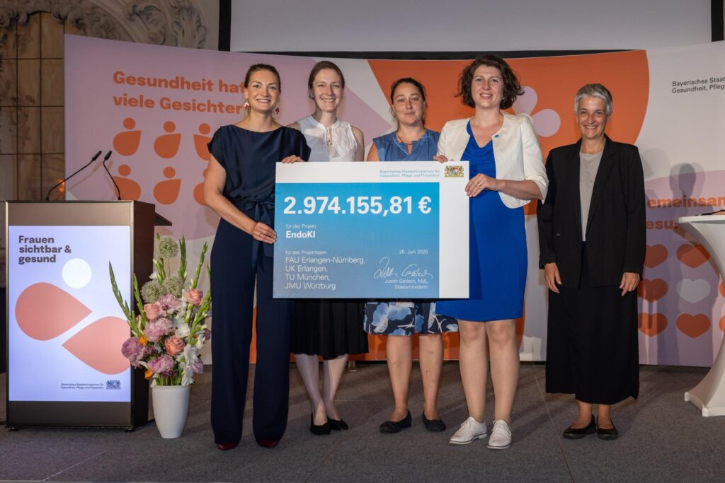 Five female researchers at FAU and Universitätsklinikum Erlangen and two partners from Universität Würzburg and TU München are collaborating on the EndoKI (Endometriose und künstliche Intelligenz) project in order to carry out interdisciplinary research “by women, for women” on the condition. The project, which is due to run for three years, is being funded as part of the digital and innovative health and care projects (BayDiGuP) and women’s health and artificial intelligence.